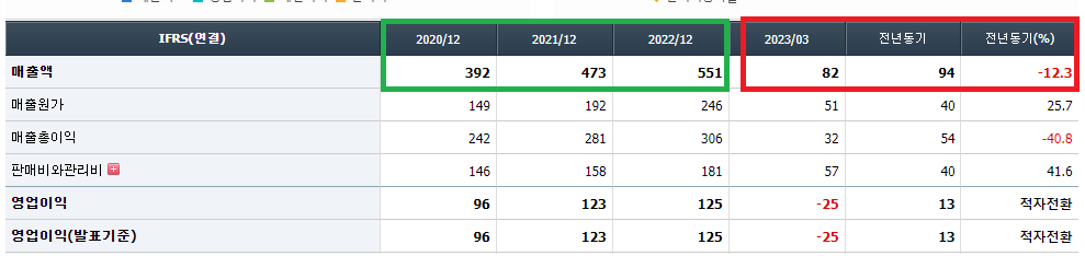 그리고 매출액이 3년 동안 꾸준히 증가했으나 올해 1분기는 전년동기 대비 감소한 것도 캐치했다.
