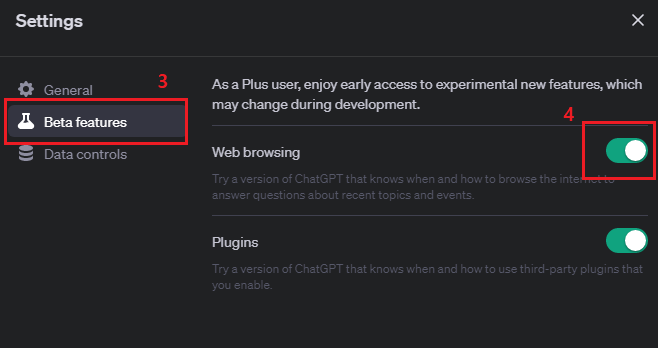 이렇게 하면 ChatGPT의 Web Browsing 기능을 사용할 수 있다.