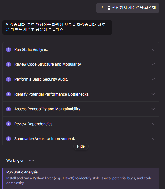 - Jules가 변경 계획을 요약하여 제시 ▷ 사용자 승인