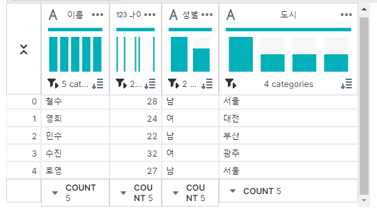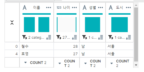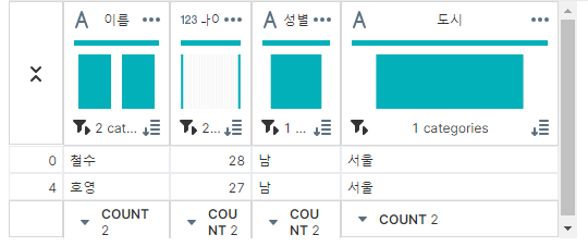 ▶ 출력 결과 (나이에 모든 값이 있기 때문에 isnull로는 결과가 없다.)